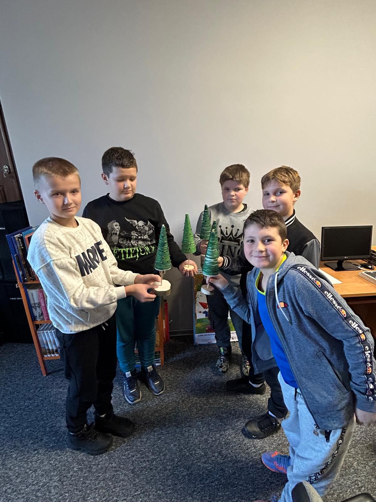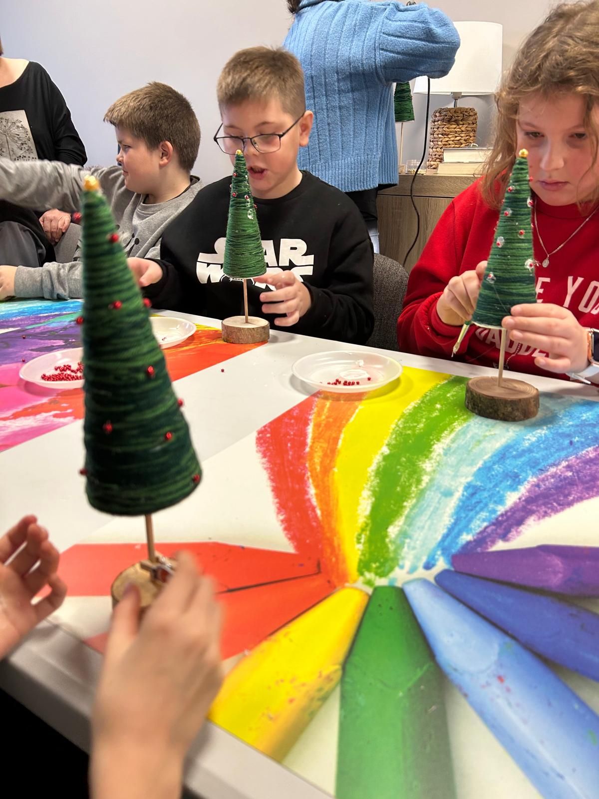 Uczniowie klas IV i V Szkoły Podstawowej w Różanymstoku wraz z opiekunką grupy Panią Teresą miały przyjemność uczestniczyć w kreatywnych warsztatach tworzenia choinek bożonarodzeniowych. Wykorzystano różnorodne materiały, takie jak: włóczka, koraliki, kawałki drewna. Dzieci pracowały w grupie, co sprzyjało integracji i współpracy. Pod czujnym okiem instruktorów powstały piękne, ręcznie przyzdobione choinki, które zagoszczą we wnętrzach domów uczniów. Zajęcia rozwijały zdolności manualne, ale też pozwoliły uczestnikom poznać tradycje związane z Bożym Narodzeniem.