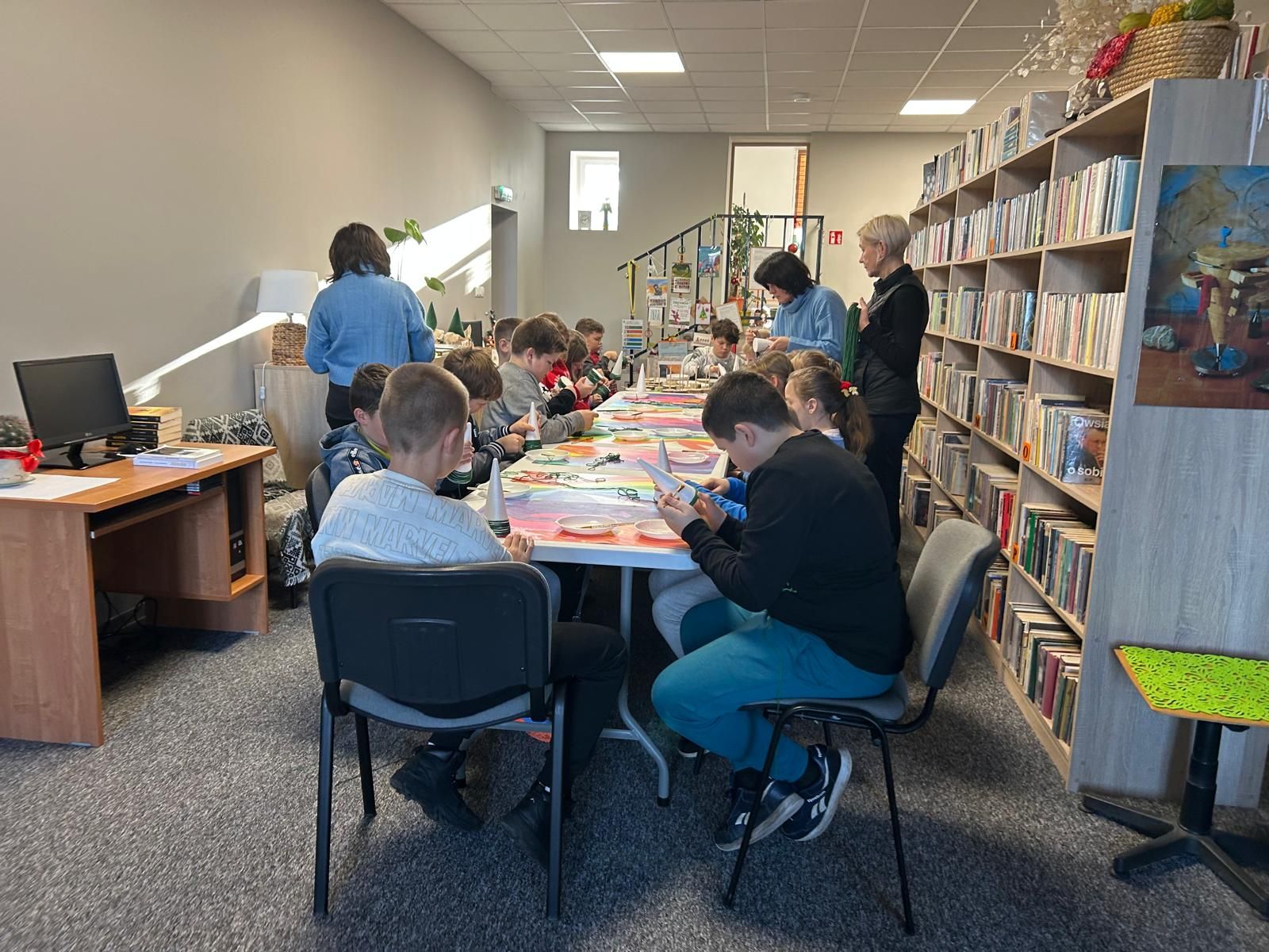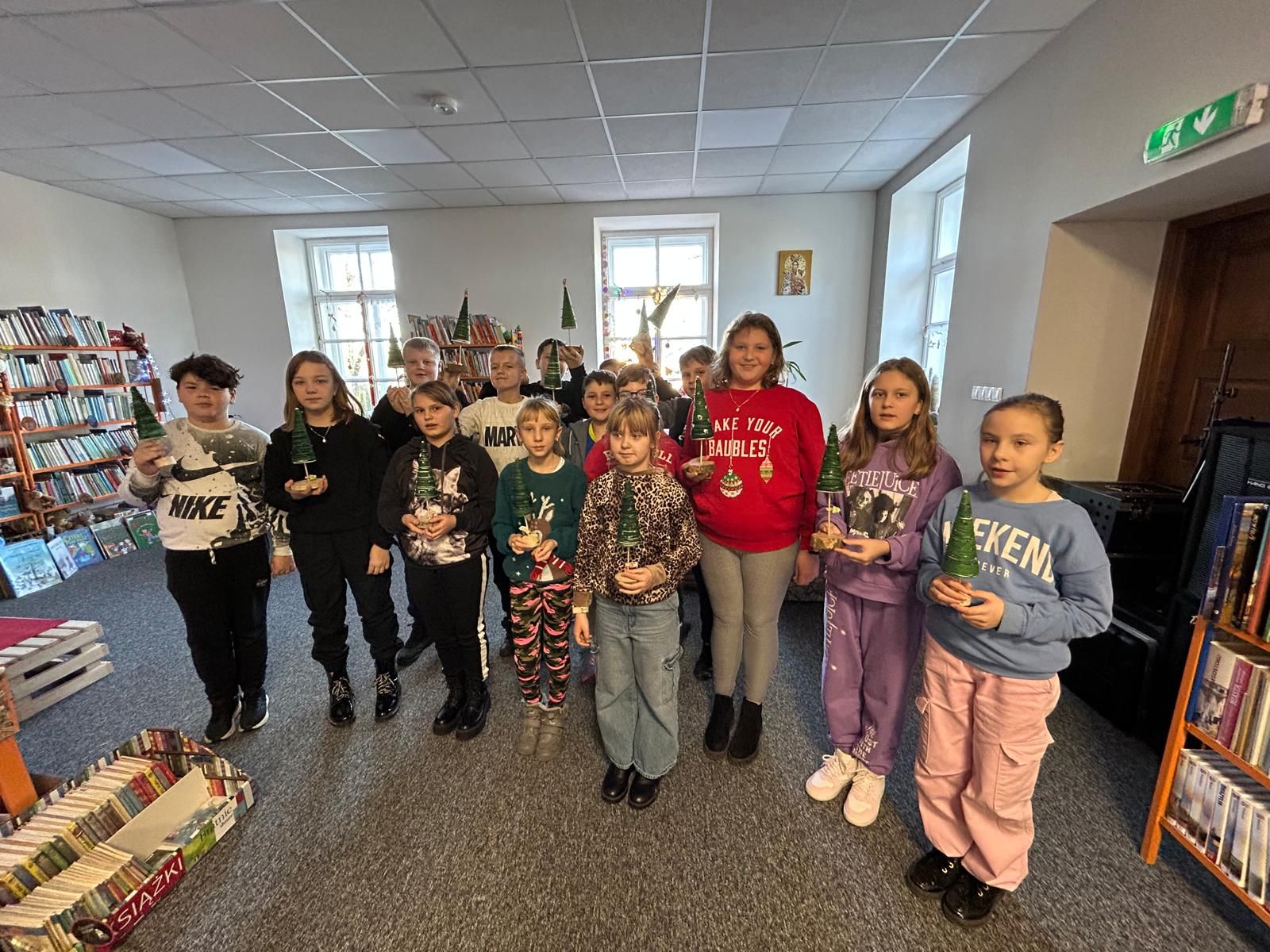 Dziś filia biblioteczna w Różanymstoku zamieniła się w pracownię plastyczną przygotowującą przepiękne choinki świąteczne. Dzięki uprzejmości Pań Basi i Doroty z mgokdb