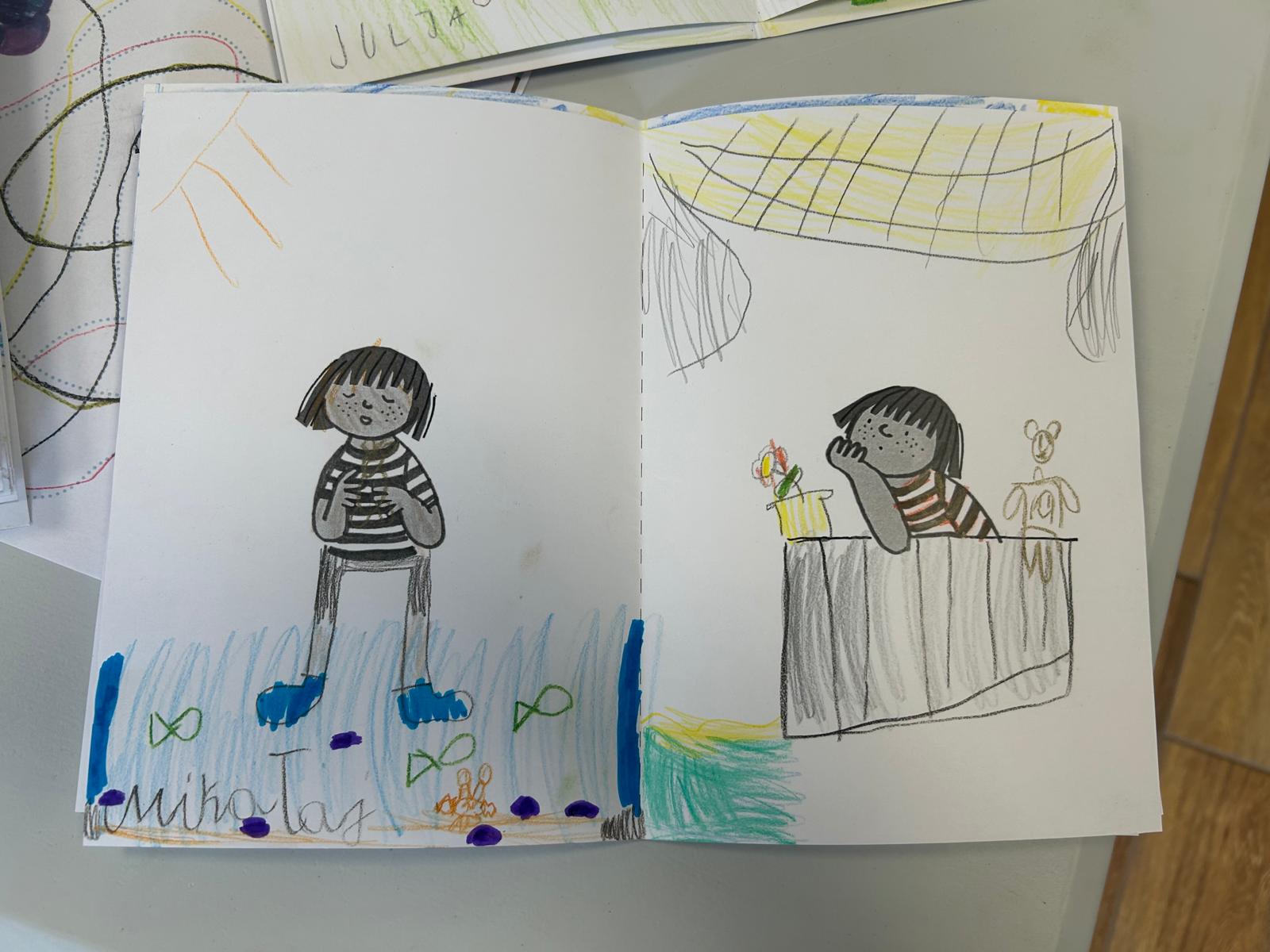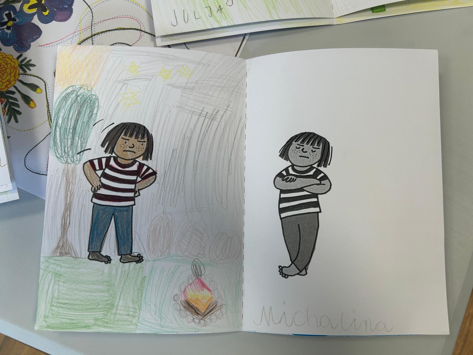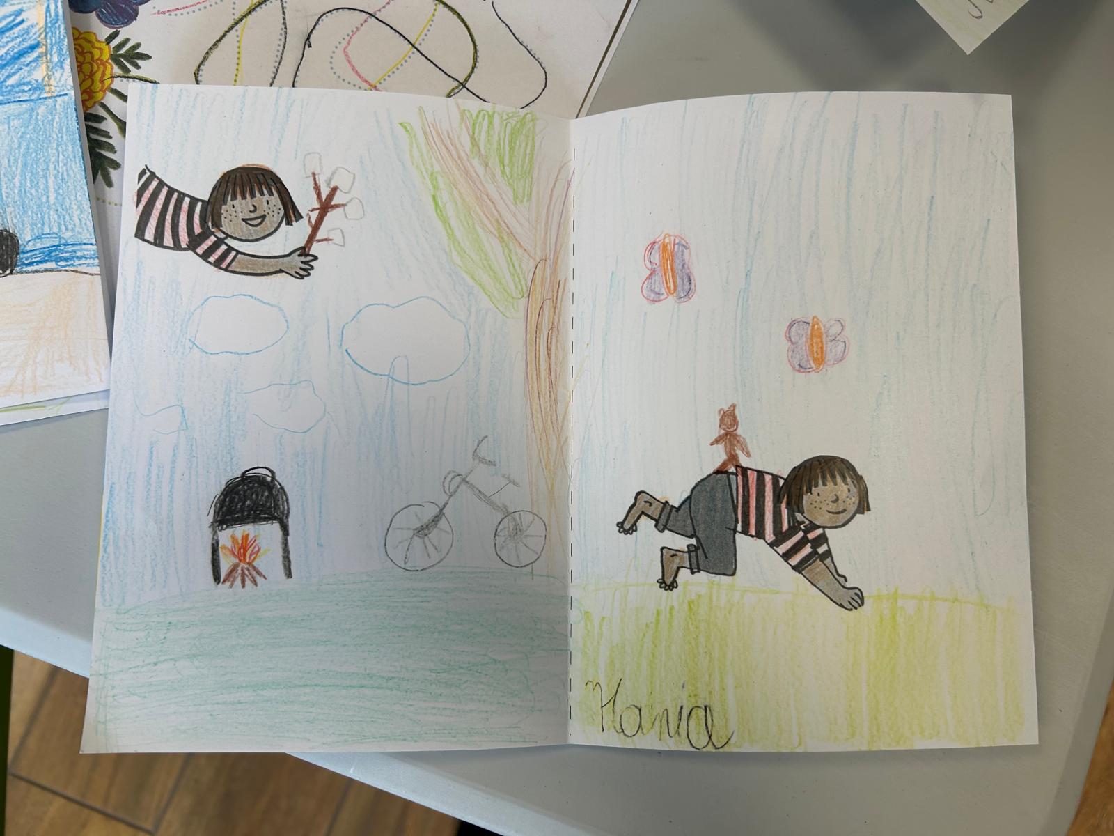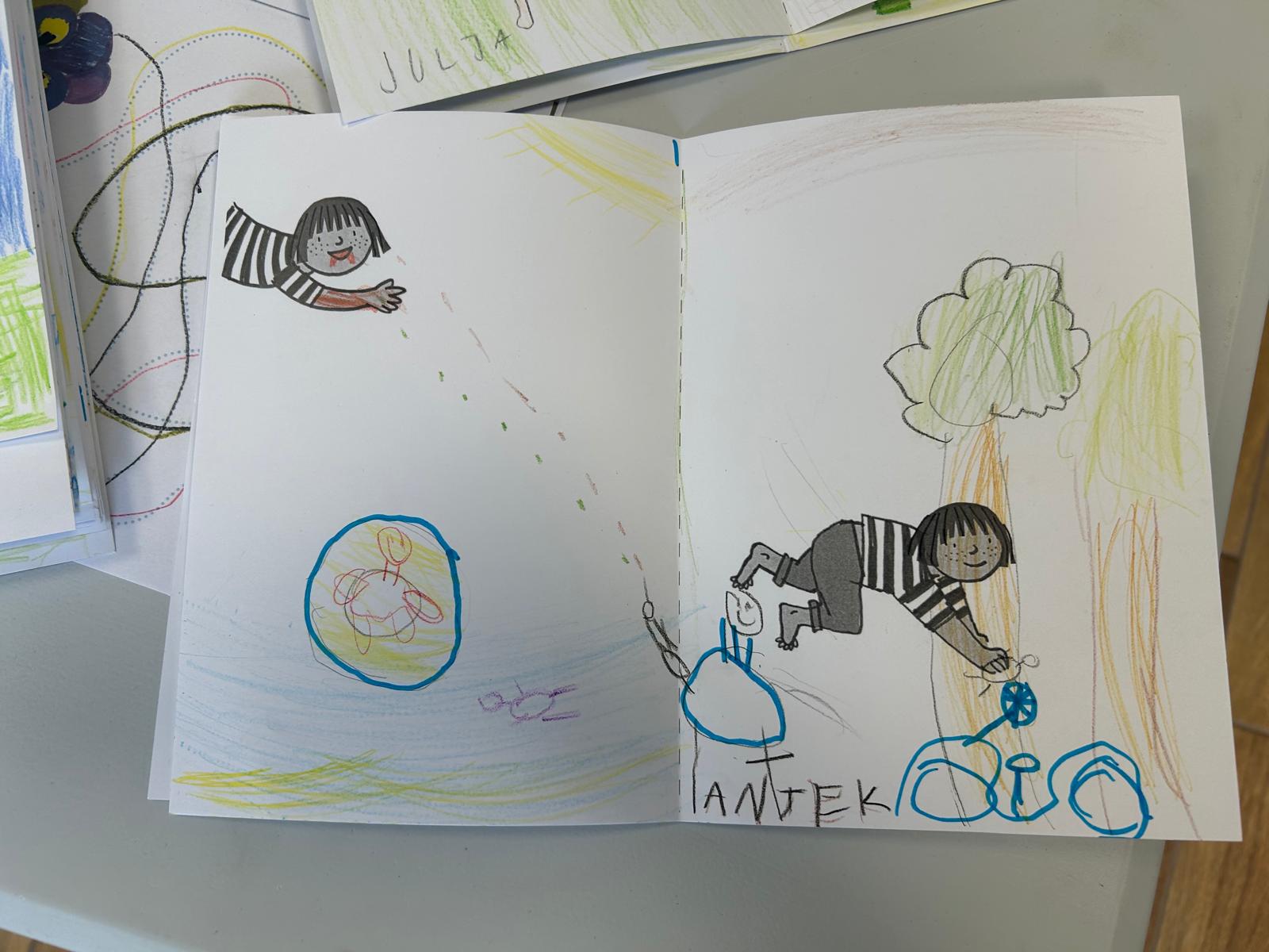 Spotkanie rozpoczęliśmy od nietypowych ćwiczeń z książką, a następnie dzieci wysłuchały opowieści „Basia na wakacjach” autorstwa Zofii Staneckiej . W dalszej części zajęć dzieci tworzyły własną stronę książki przygód głównej bohaterki – Basi – na wakacjach, w ten sposób powstała wspaniała klasowa pamiątka. Spotkanie zakończyliśmy wręczeniem dyplomów Małego Miłośnika Książek. Dziękujemy pięknie za wspólnie spędzony czas!