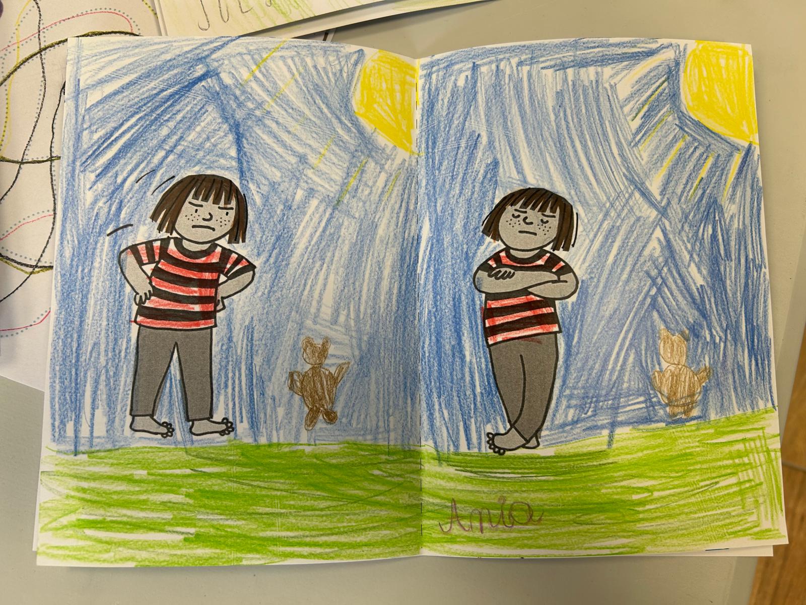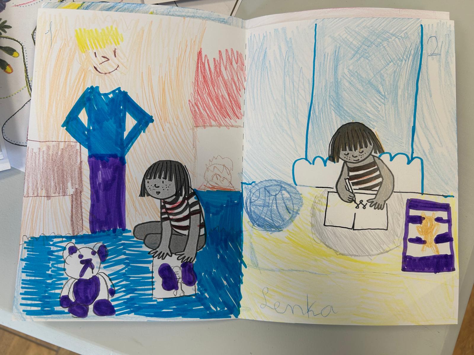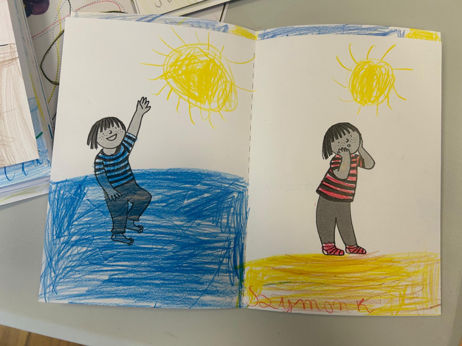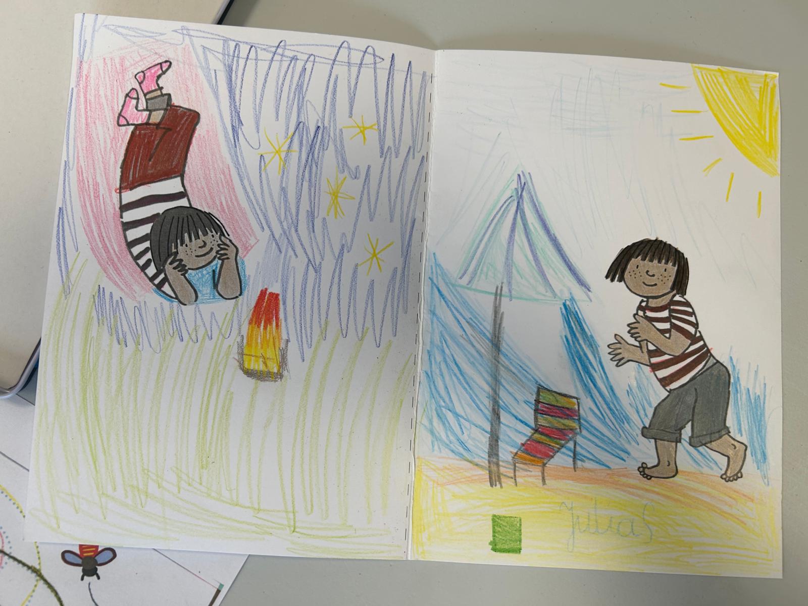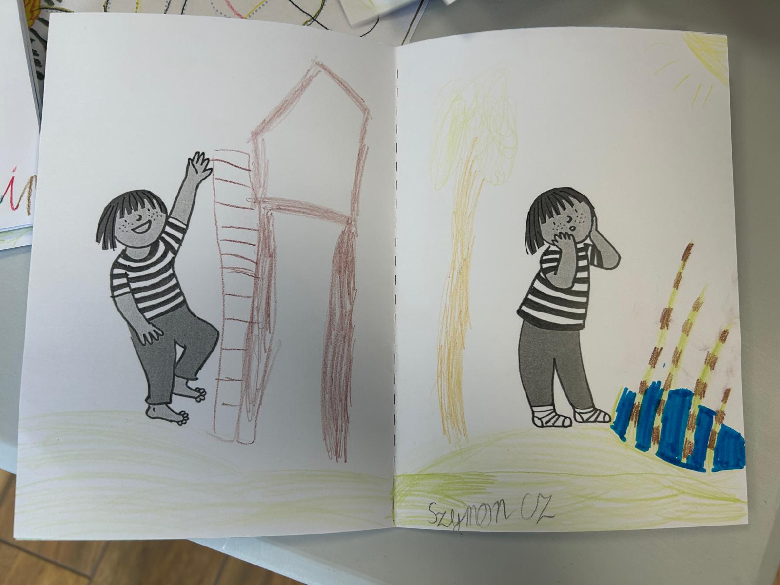 Spotkanie rozpoczęliśmy od nietypowych ćwiczeń z książką, a następnie dzieci wysłuchały opowieści „Basia na wakacjach” autorstwa Zofii Staneckiej . W dalszej części zajęć dzieci tworzyły własną stronę książki przygód głównej bohaterki – Basi – na wakacjach, w ten sposób powstała wspaniała klasowa pamiątka. Spotkanie zakończyliśmy wręczeniem dyplomów Małego Miłośnika Książek. Dziękujemy pięknie za wspólnie spędzony czas!