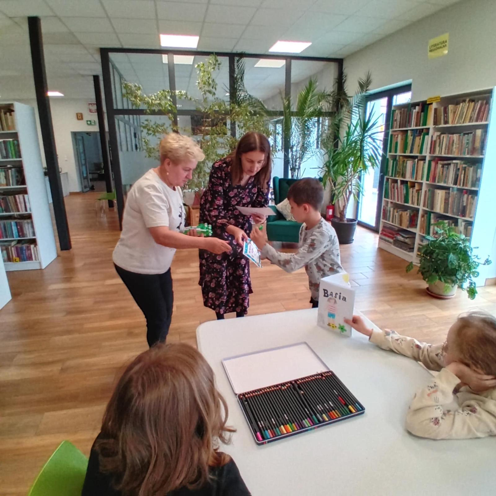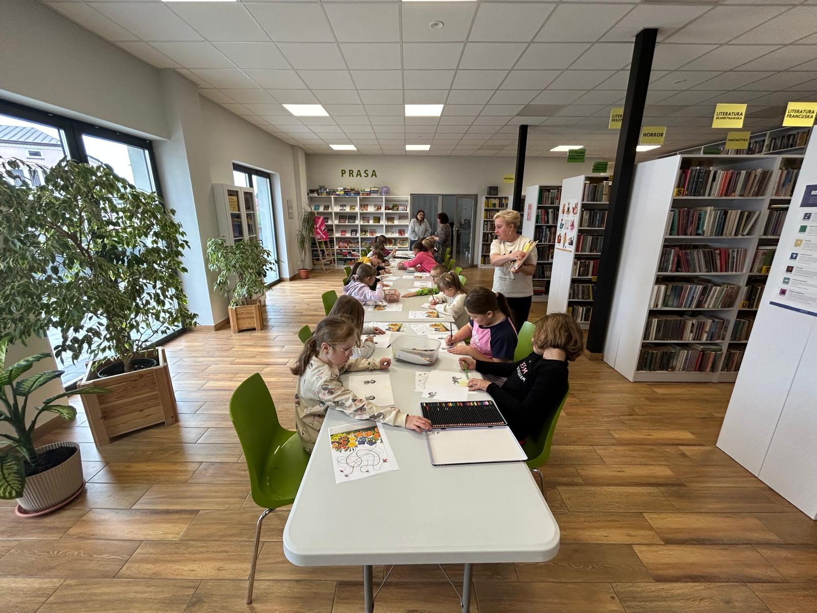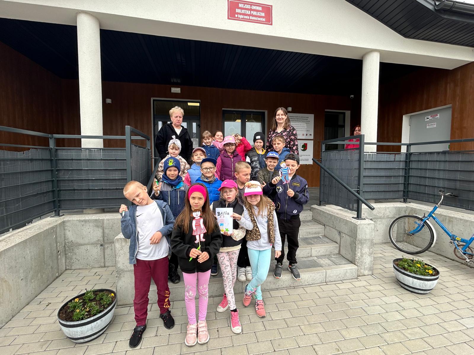 Wczoraj, z okazji obchodzonego niedawno Światowego Dnia Książki i Praw Autorskich, uczniowie klasy I „a” ze Szkoły Podstawowej im. Tadeusza Kościuszki w Dąbrowie Białostockiej wraz z nauczycielami Panią Asią i Panią Zosią odwiedzili naszą bibliotekę.
