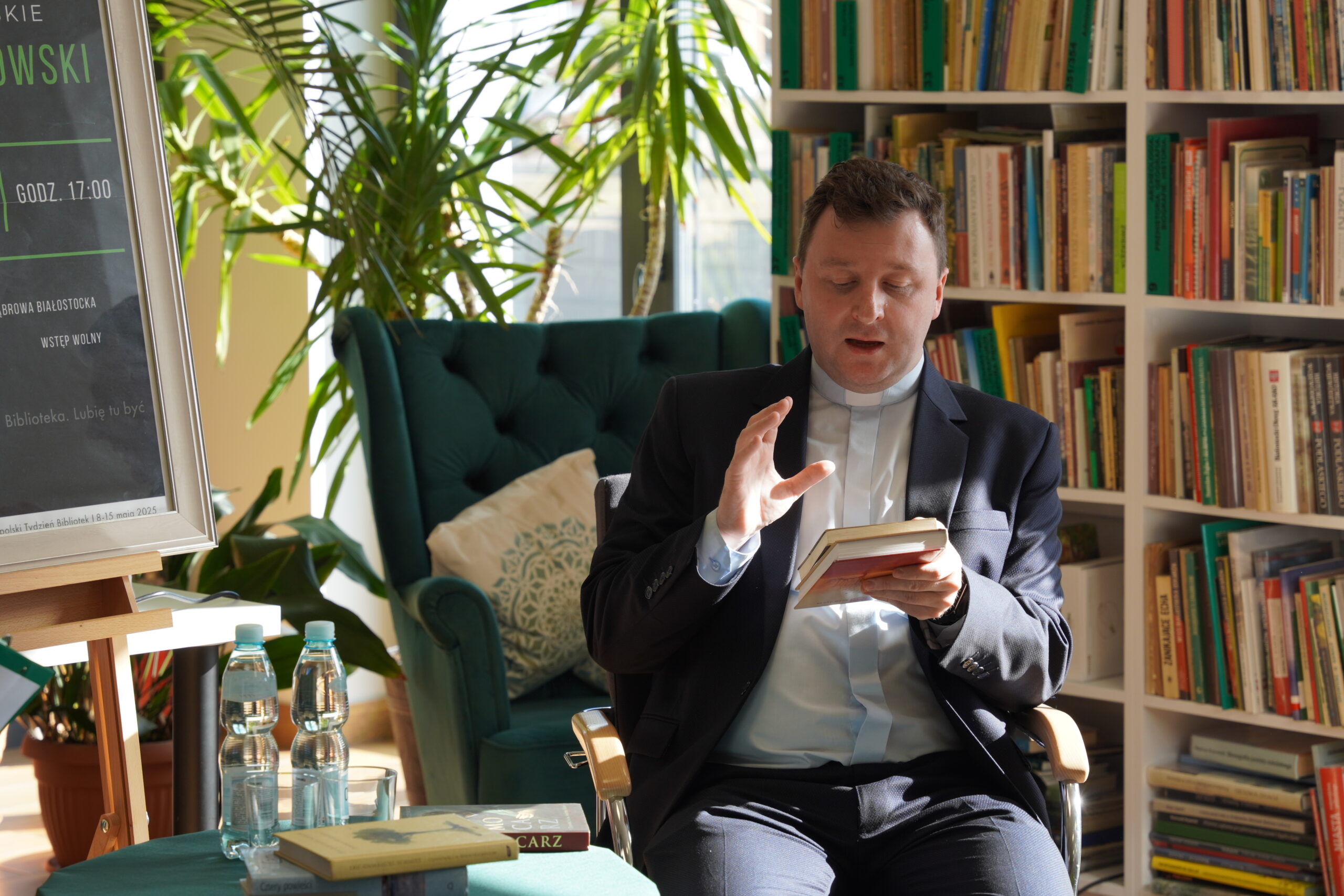 Dziś w bibliotece gościliśmy wyjątkową osobę – Księdza Kamila Dąbrowskiego – Wikariusza Parafii pw. Św. Stanisława B. M. w Dąbrowie Białostockiej, psychologa, utalentowanego współautora i autora niezwykłych publikacji o tematyce religijnej, poetę.