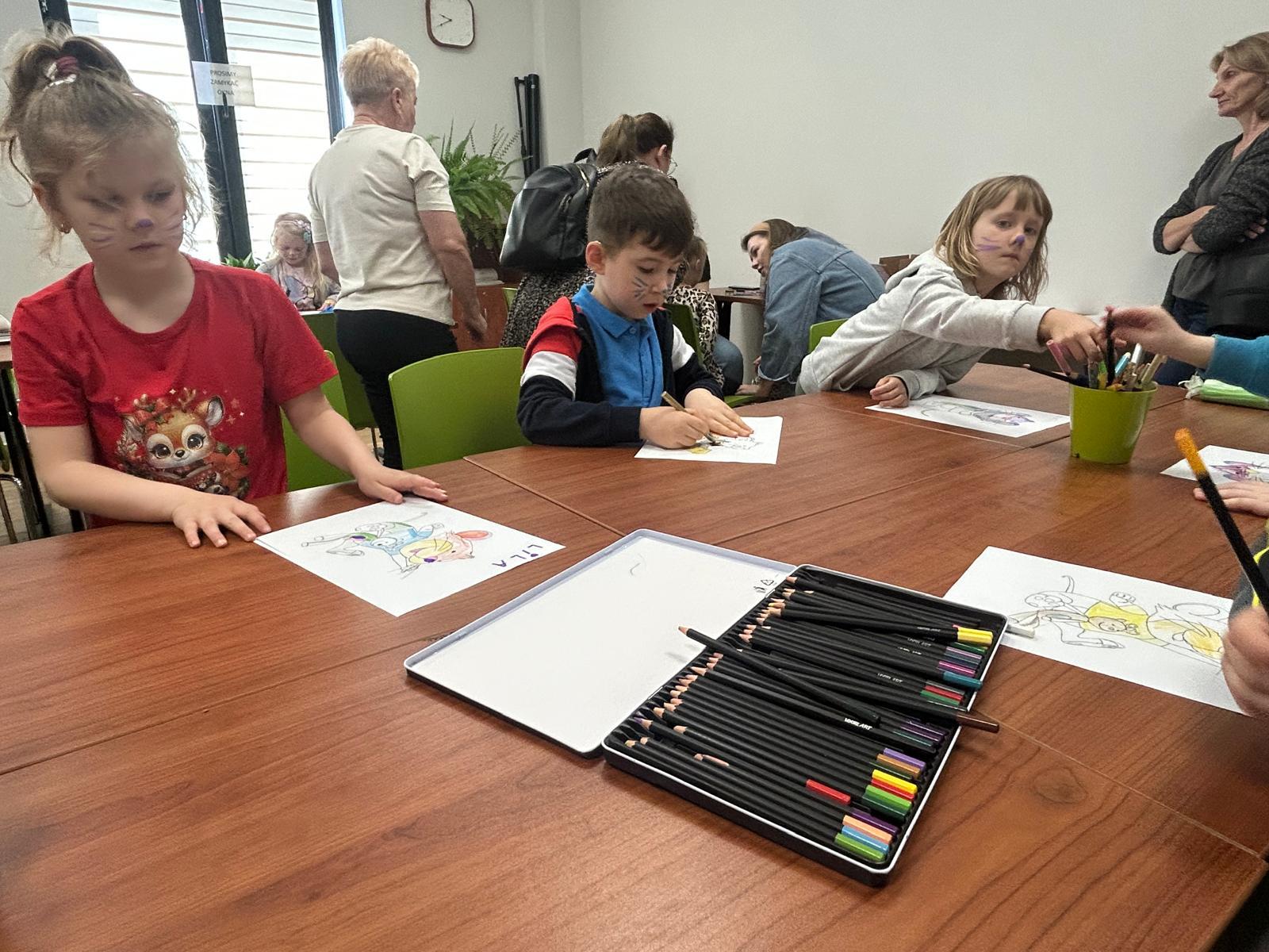 Dziś odwiedziła nas przesympatyczna grupa przedszkolna „Misie” z Samorządowego Przedszkola w Dąbrowie Białostockiej. Dzieci zapoznały się z biblioteką, zwiedziły jej wszystkie zakamarki, wspinały się po ściance wspinaczkowej, wykonywały prace plastyczne, ozdabiały zakładki do książek, ale przede wszystkim spędziły czas słuchając książeczki czytanej przez Panią Marylę, pt. „Tupcio Chrupcio mówi prawdę”. Spotkanie było okazją do rozmowy o ulubionych bohaterach literackich dzieci, bajkach, a także o tym, co można robić w bibliotece i dlaczego warto czytać. Dzięki uprzejmości Pani Oli i Klaudyny z Miejsko-Gminnego Ośrodka Kultury w Dąbrowie Białostockiej buzie naszych gości zamieniły się w piękne, kolorowe kotki.