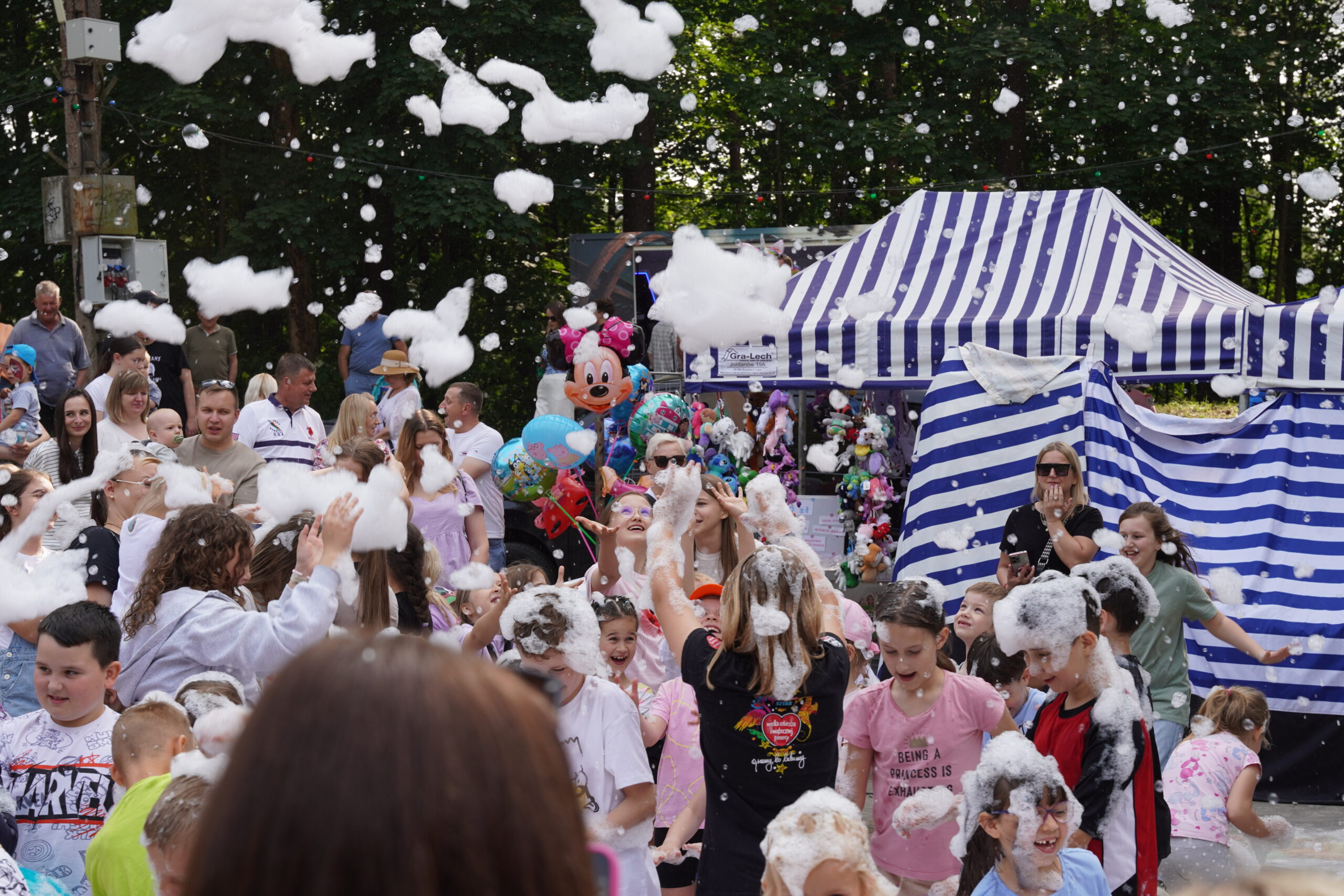 Niedziela była dniem pełnym atrakcji dla najmłodszych! Biegi przełajowe, muszla koncertowa zmieniła się w strefę relaksu z grami planszowymi, a potem… szalone Piana Party! 😄