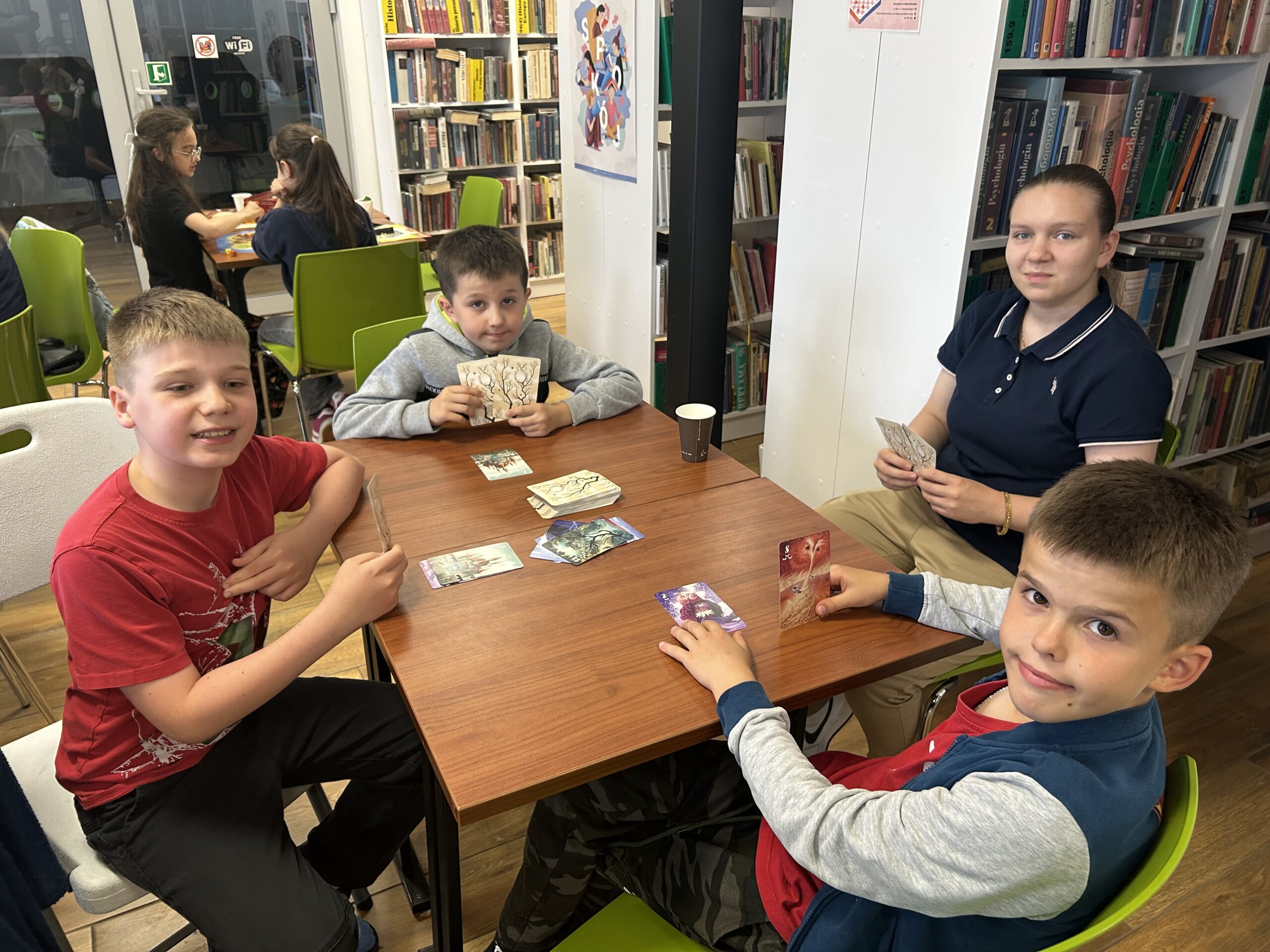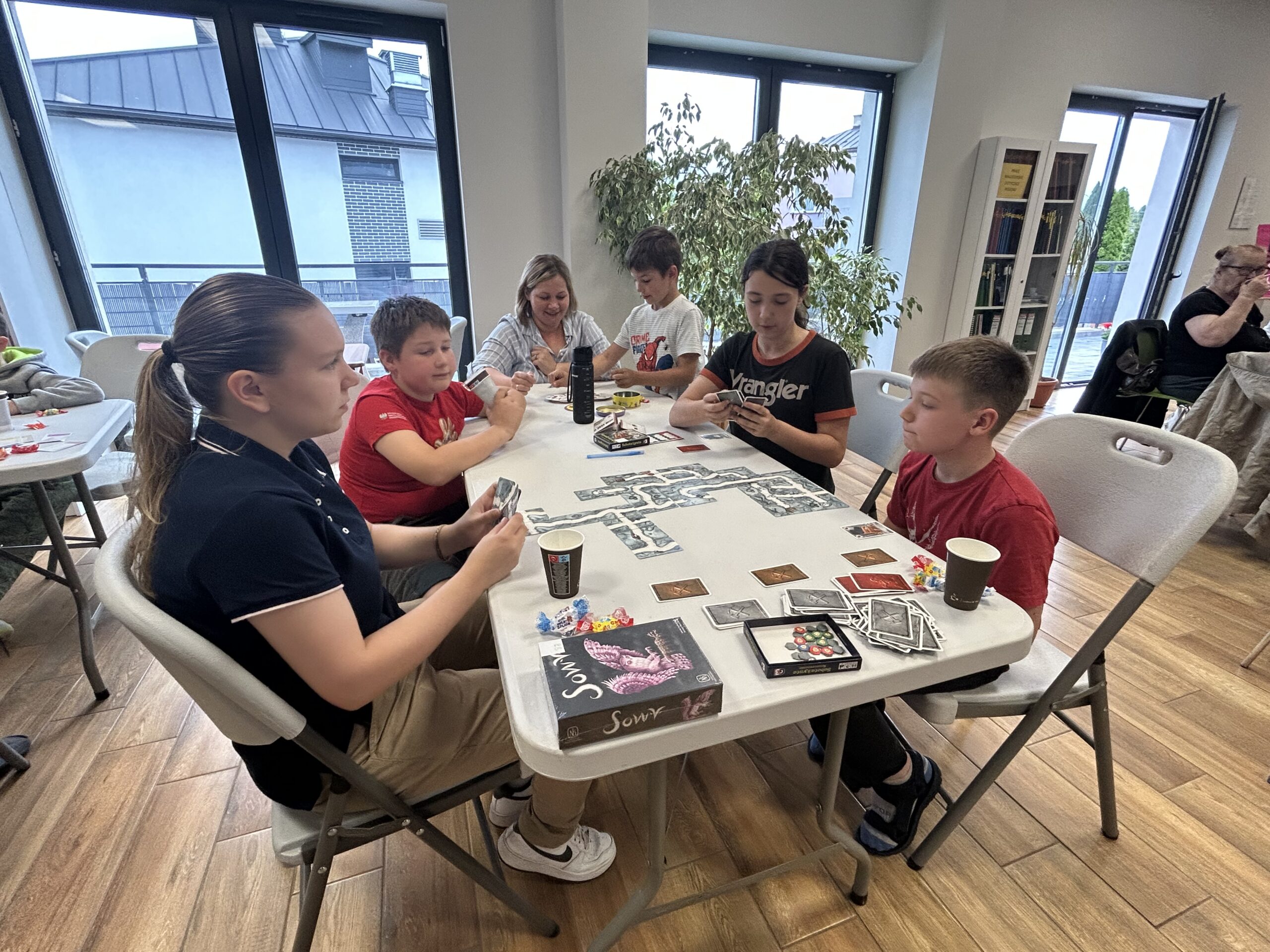 W ubiegły piątek, 27 czerwca, biblioteka tętniła życiem za sprawą miłośników gier planszowych. Wydarzenie zgromadziło około 40 osób, tworząc prawdziwie międzypokoleniową wspólnotę graczy. Wśród uczestników znaleźli się zarówno najmłodsi entuzjaści, jak i młodzież, dorośli, a także aktywni seniorzy, co świadczyło o uniwersalnym uroku gier planszowych.