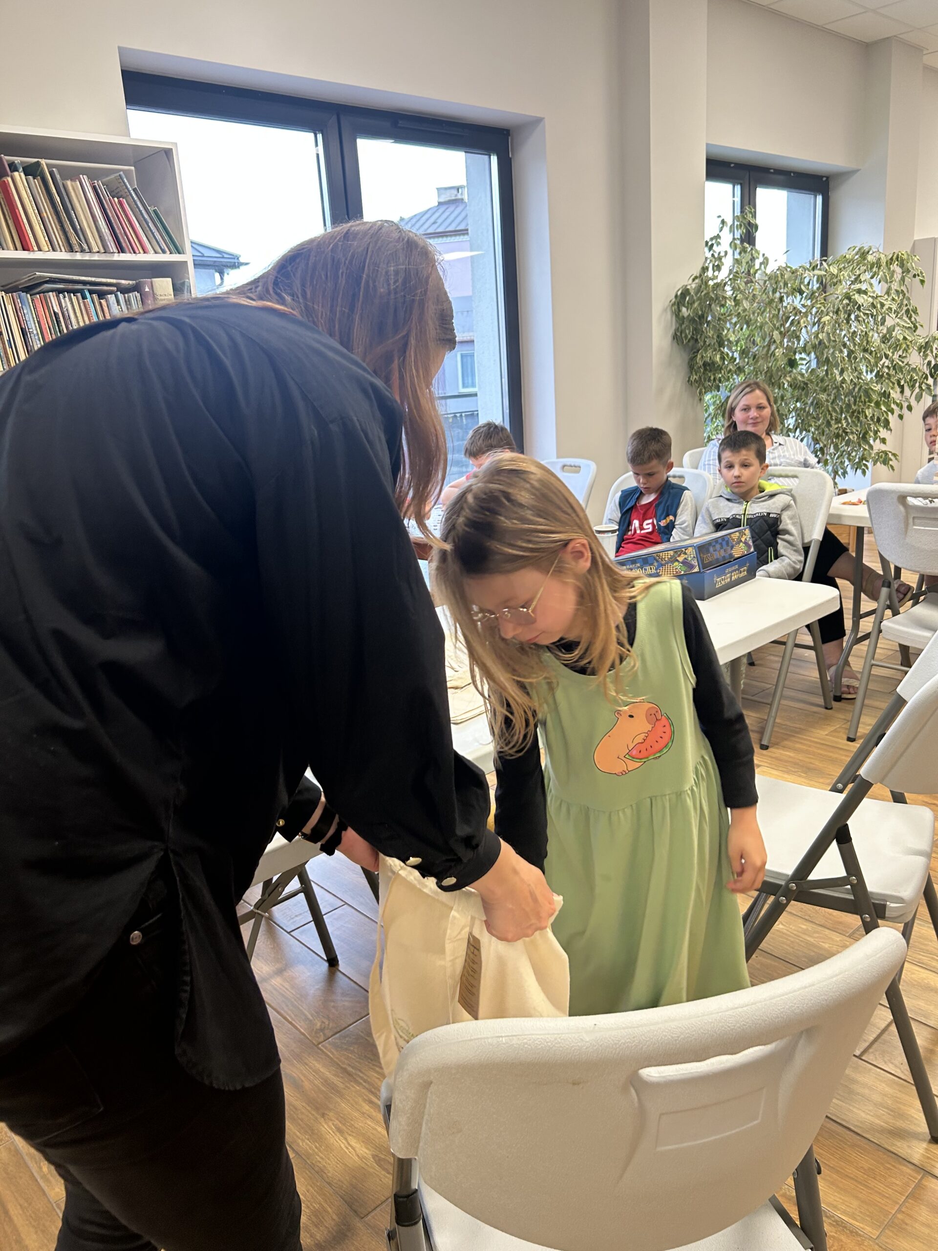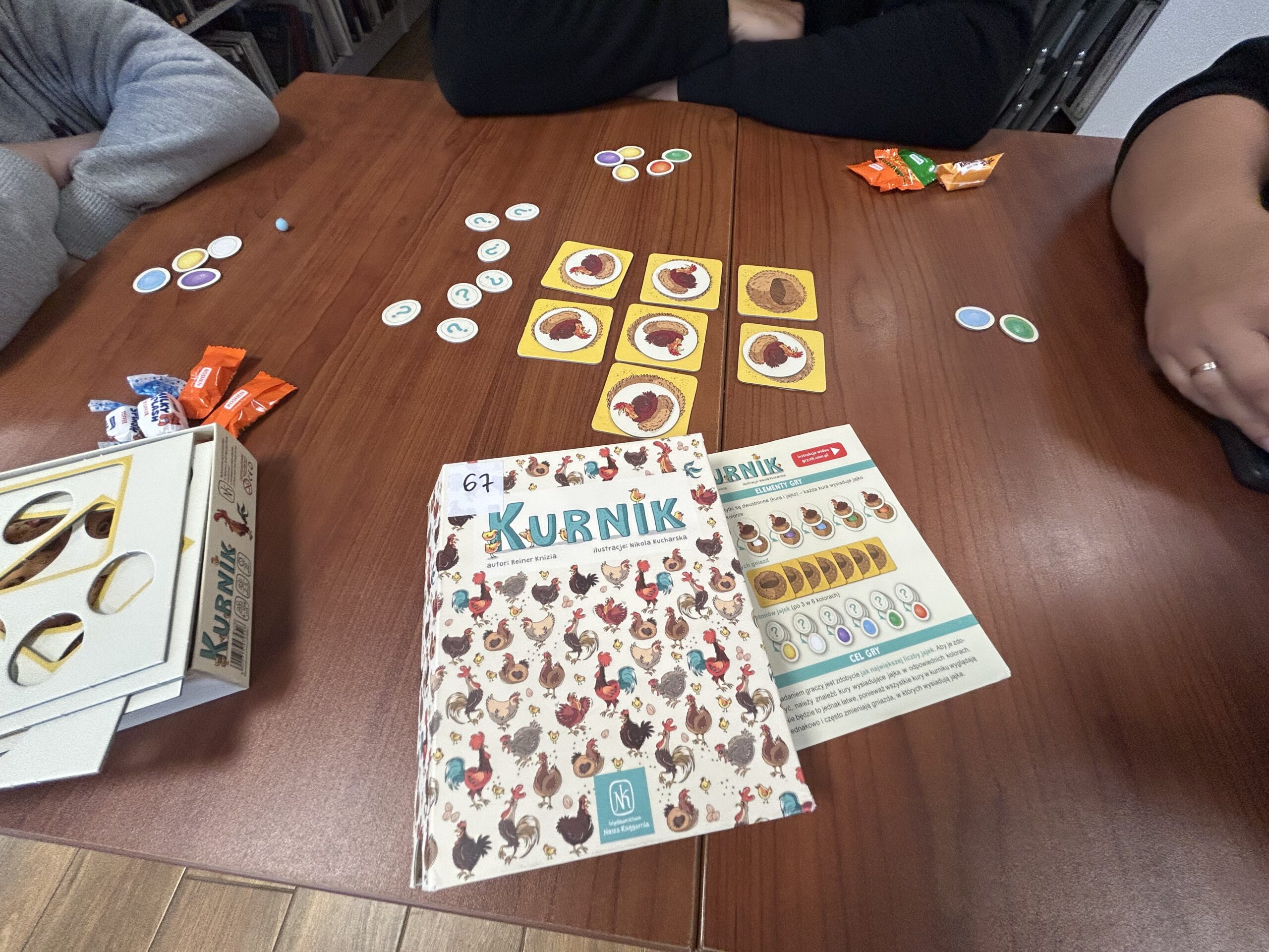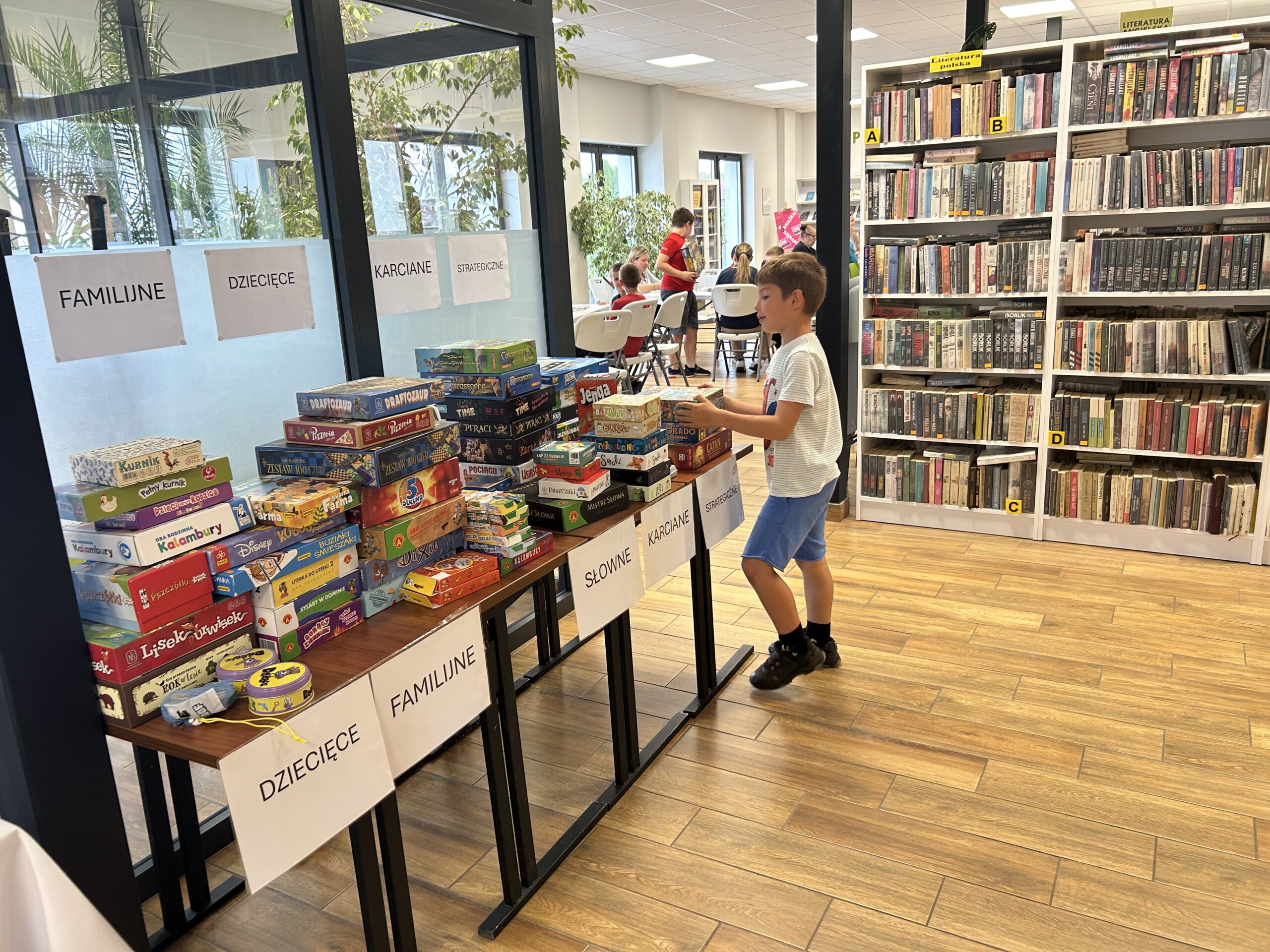 Uczestnicy mieli okazję zanurzyć się w świat różnorodnych tytułów, od klasycznych strategii po dynamiczne gry familijne. Stoliki uginały się pod ciężarem pudełek, a biblioteka wypełniła się radosnym śmiechem, głośnymi dyskusjami i okrzykami zwycięstwa. Nie zabrakło popularnych pozycji, które angażowały zarówno początkujących, jak i doświadczonych graczy. Wszyscy chętnie testowali swoje umiejętności strategiczne, negocjacyjne i zręcznościowe, a co najważniejsze – doskonale się bawili. Dodatkową atrakcją wieczoru było losowanie gadżetów bibliotecznych, mini gier.