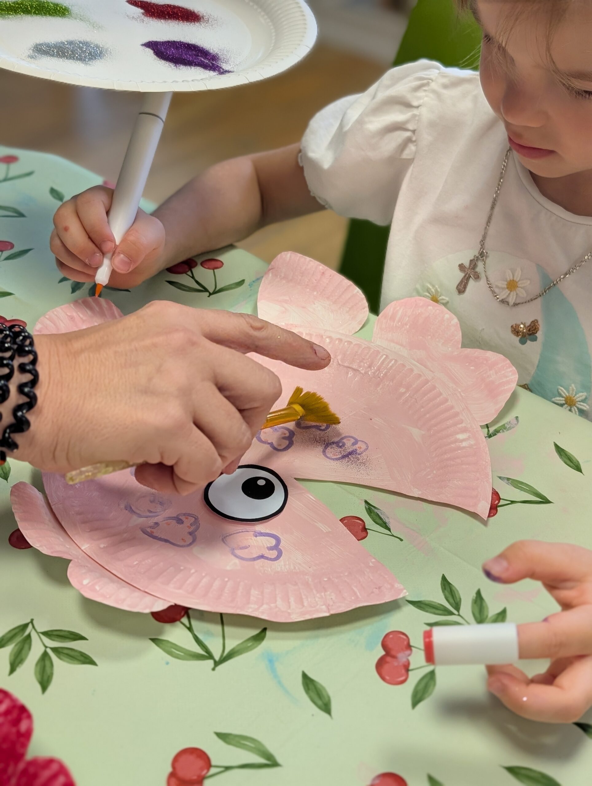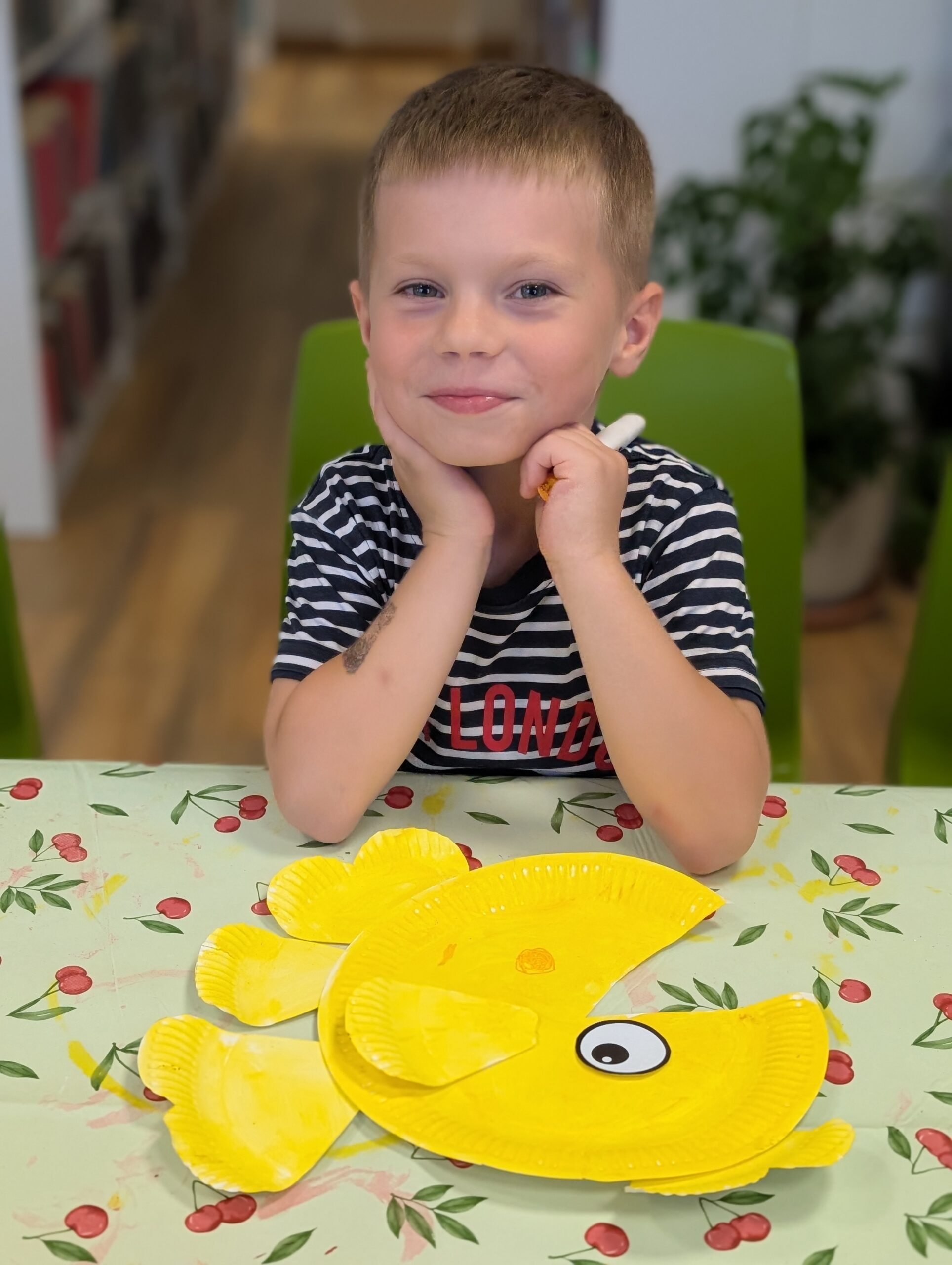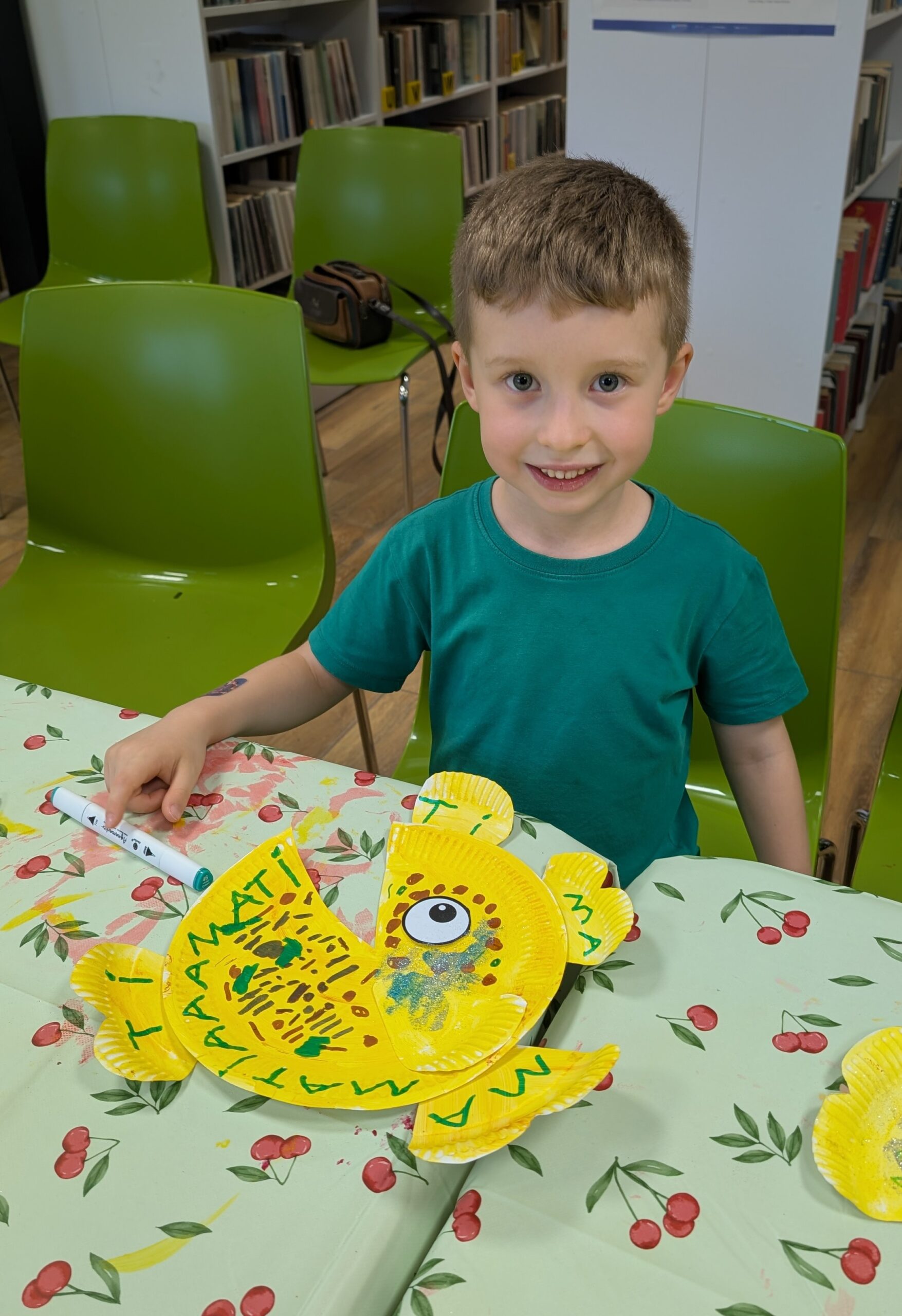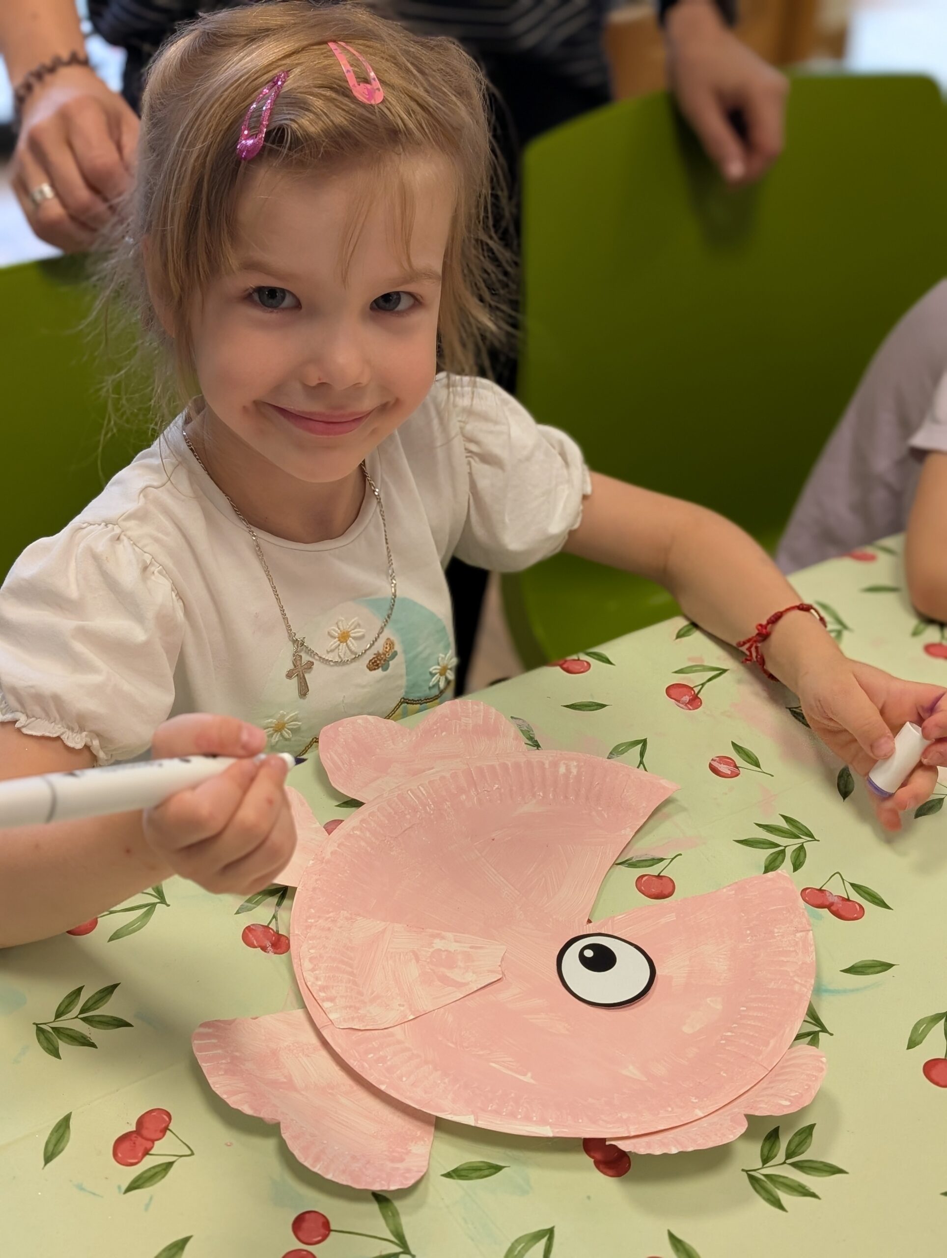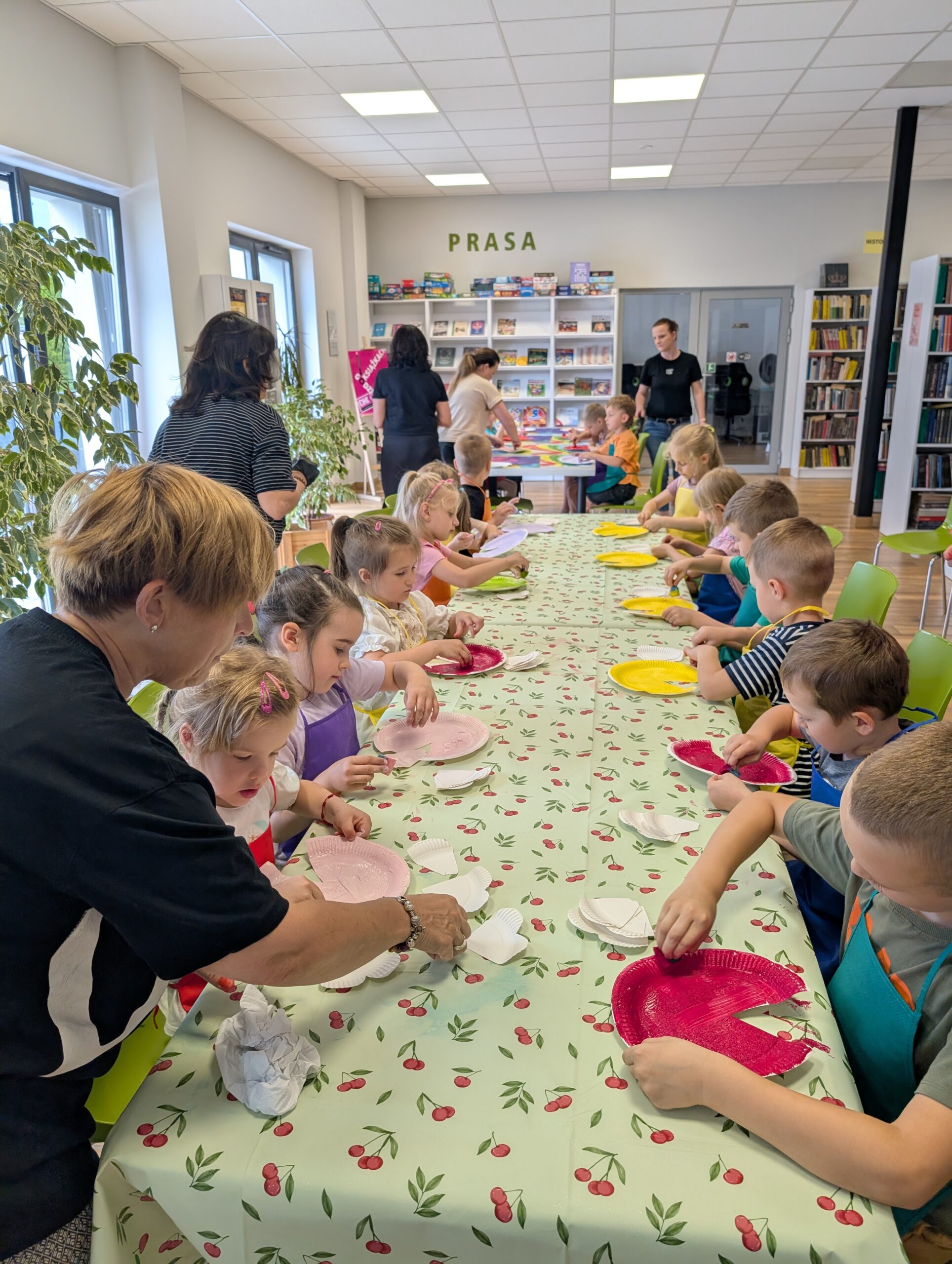 Po dawce literackiej, przyszedł czas na działanie! Przedszkolaki wzięły udział w warsztatach plastycznych prowadzonych przez Panią Basię z M-GOK, które pokazały niezwykłą wyobraźnię i talent naszych małych artystów. Wydarzenie zakończyliśmy wspólną zabawą na świeżym powietrzu – było kolorowo, wesoło i aktywnie!