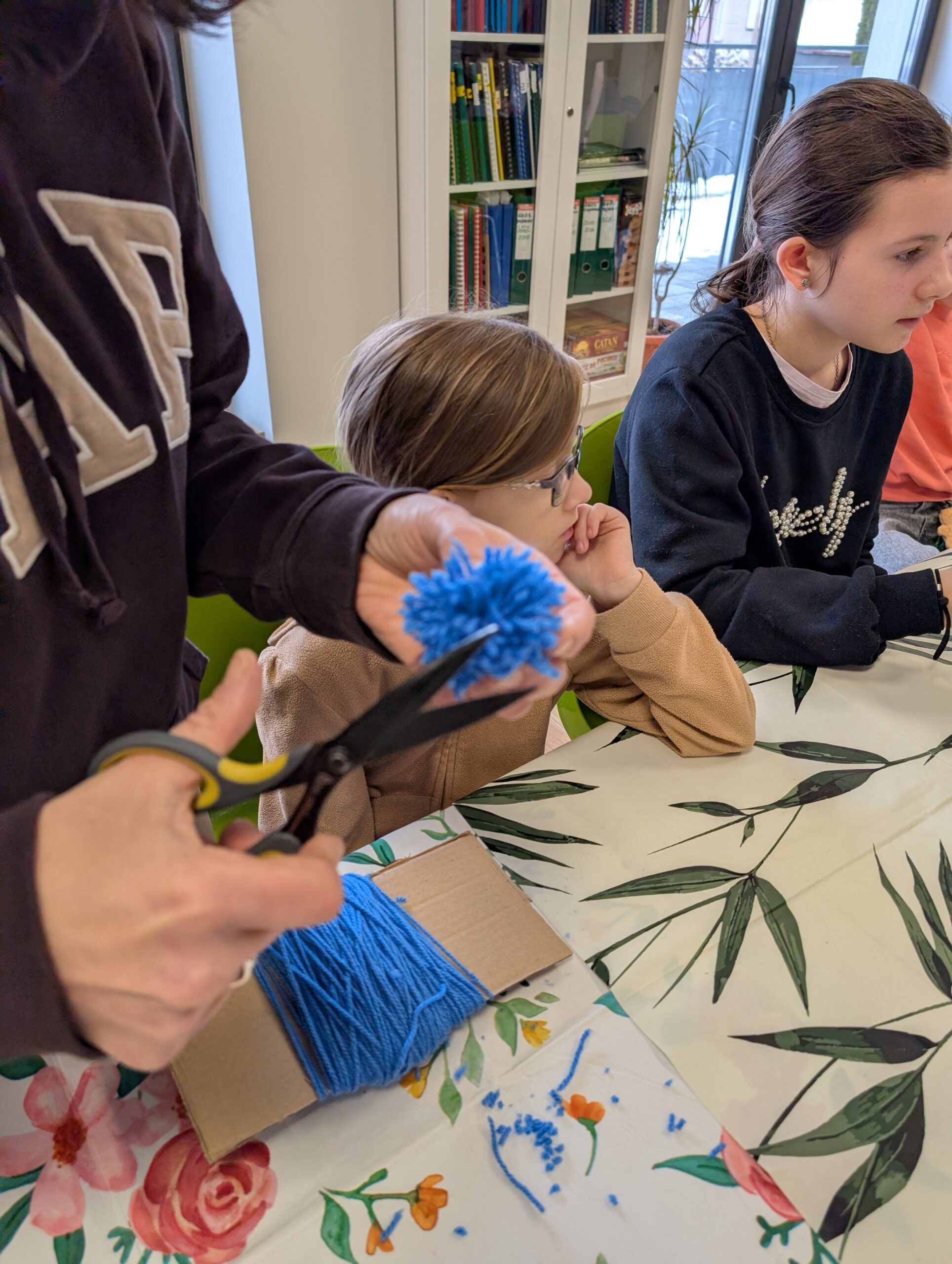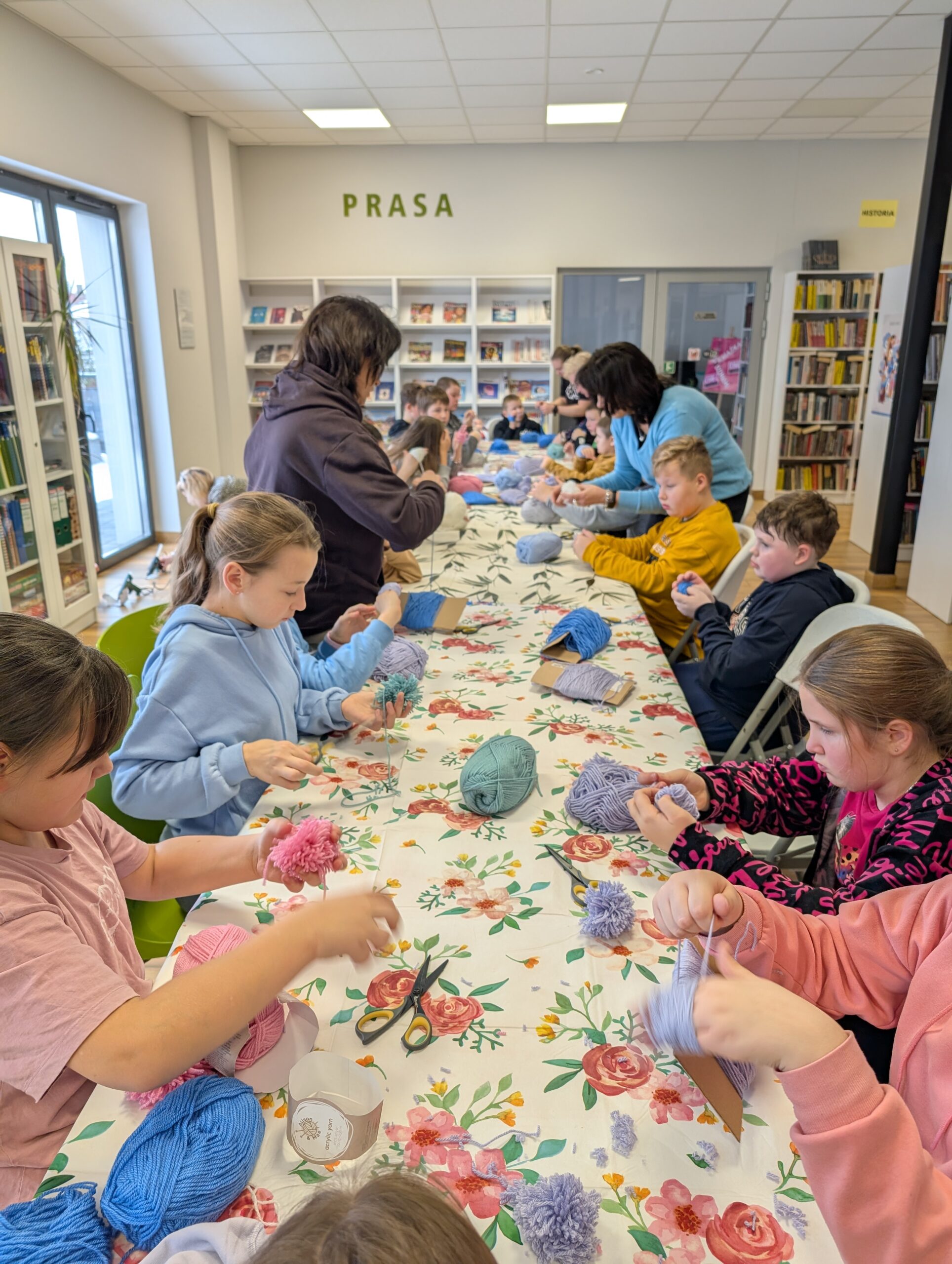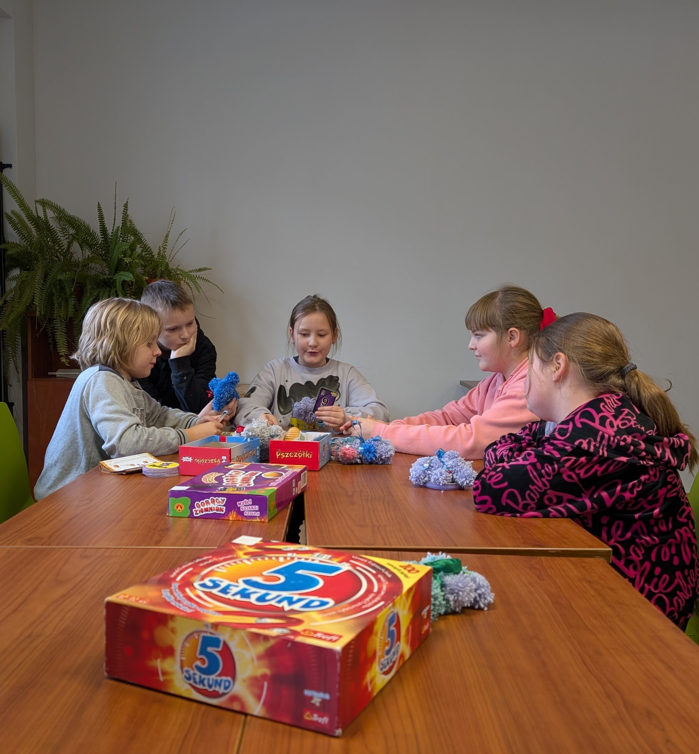 Pod czujnym okiem pani Lili 👩🏫 dzieci tworzyły wyjątkowe, puchate misie z kolorowych pomponów w różnych rozmiarach 🎨✂️.