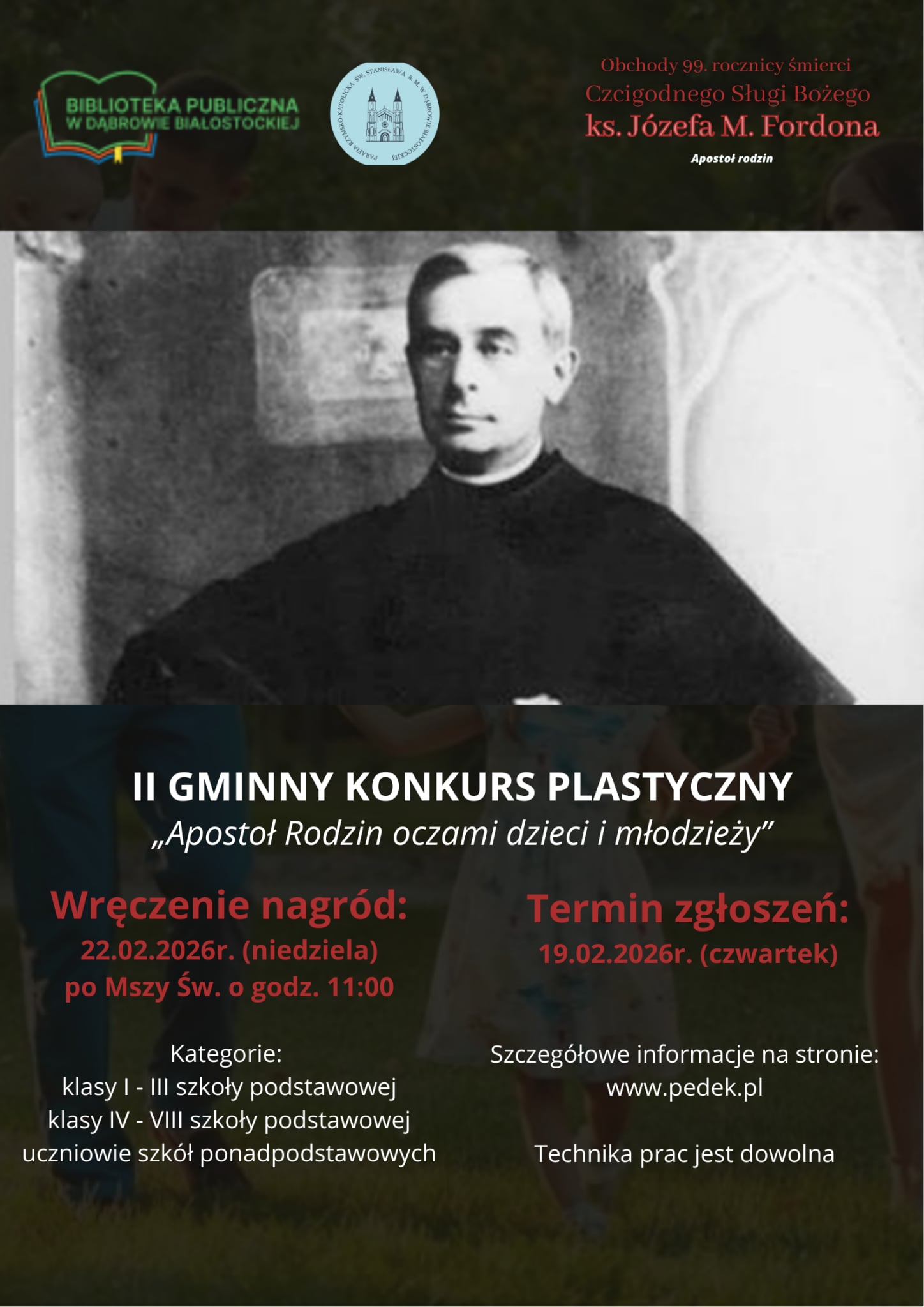 Ponadto Parafia pw. św. Stanisława B.M. w Dąbrowie Białostockiej zaprasza do udziału w konkursie plastycznym pn.: „Ksiądz Józef M. Fordon – Apostoł Rodzin”